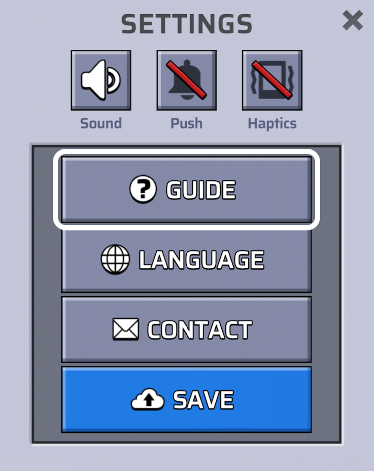 You can check the information about items, special bricks, and hazard bricks on the settings page.
