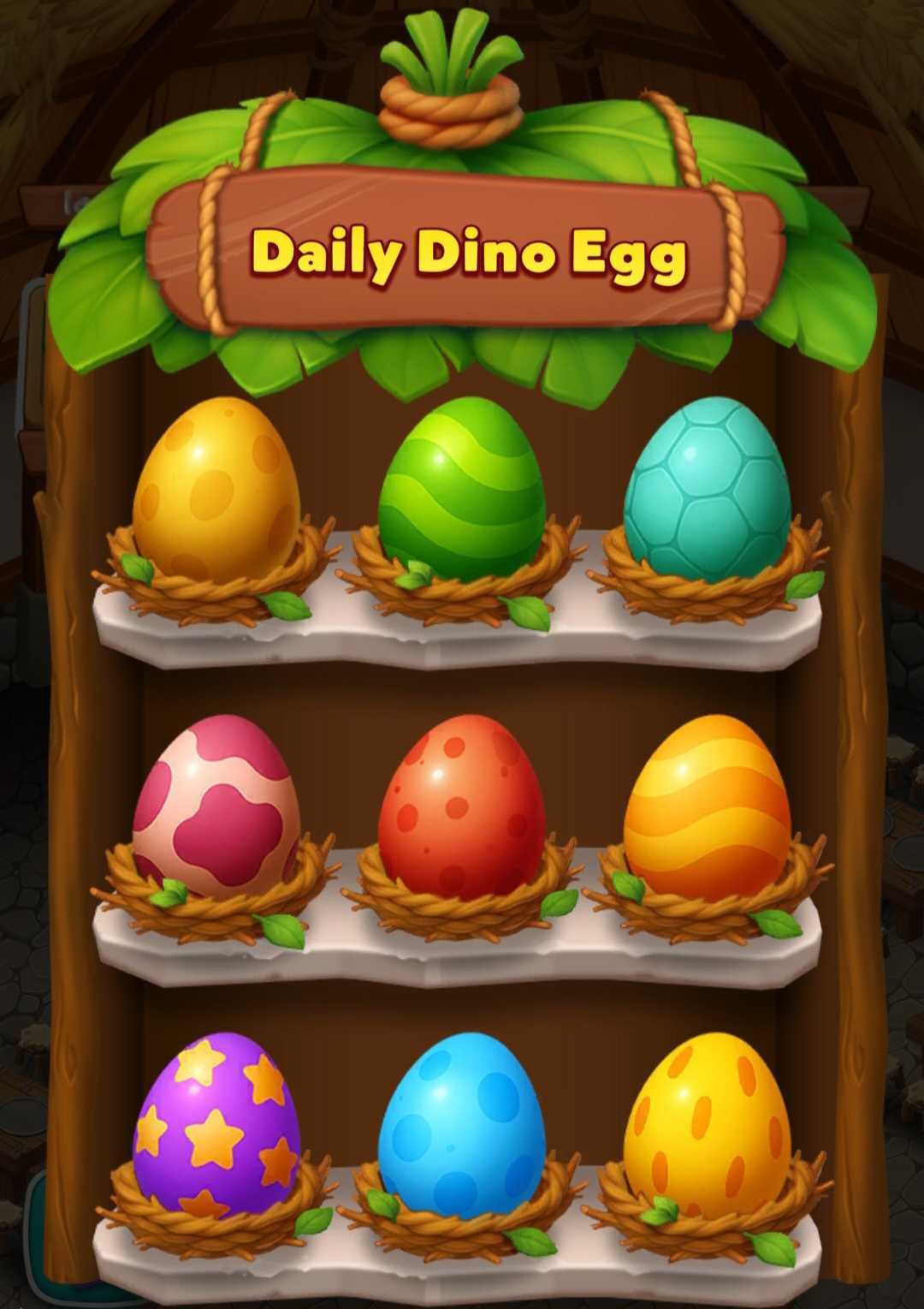 Pilih salah satu dari 9 telur dinosaurus yang ditampilkan di layar. Pecahkan untuk segera menerima hadiah acak yang berubah setiap hari.