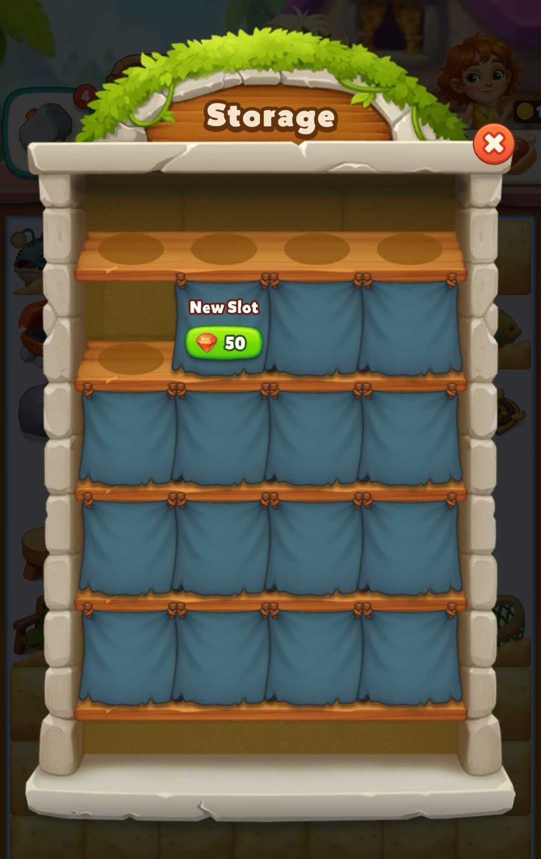 Biaya untuk perluasan slot pertama adalah 50 Permata.